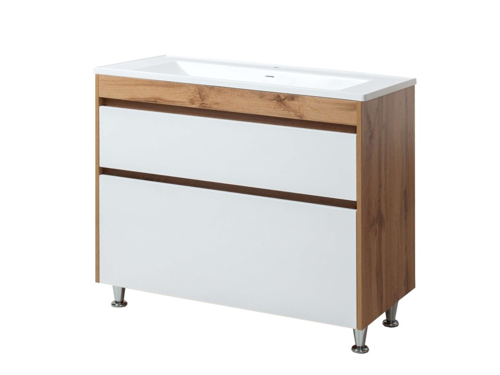 Představujeme Vám zcela nový luxusní koupelnový nábytek, který nadchne úplně každého. Tato naprosto designová skříňka s umyvadlem by rozhodně neměla chybět v žádné moderní koupelně. Umyvadlo, které je součástí skříňky, je vyrobeno z velice kvalitní sanitární keramiky. Povrchová úprava je řešena bílou barvou v kombinaci s dřevem. Velkou výhodou této skříňky je její soft close dovírání, díky kterému bude užívání skříňky naprosto pohodlné. Pociťte výhody a úložný prostor, které Vám tato skříňka dopřeje.