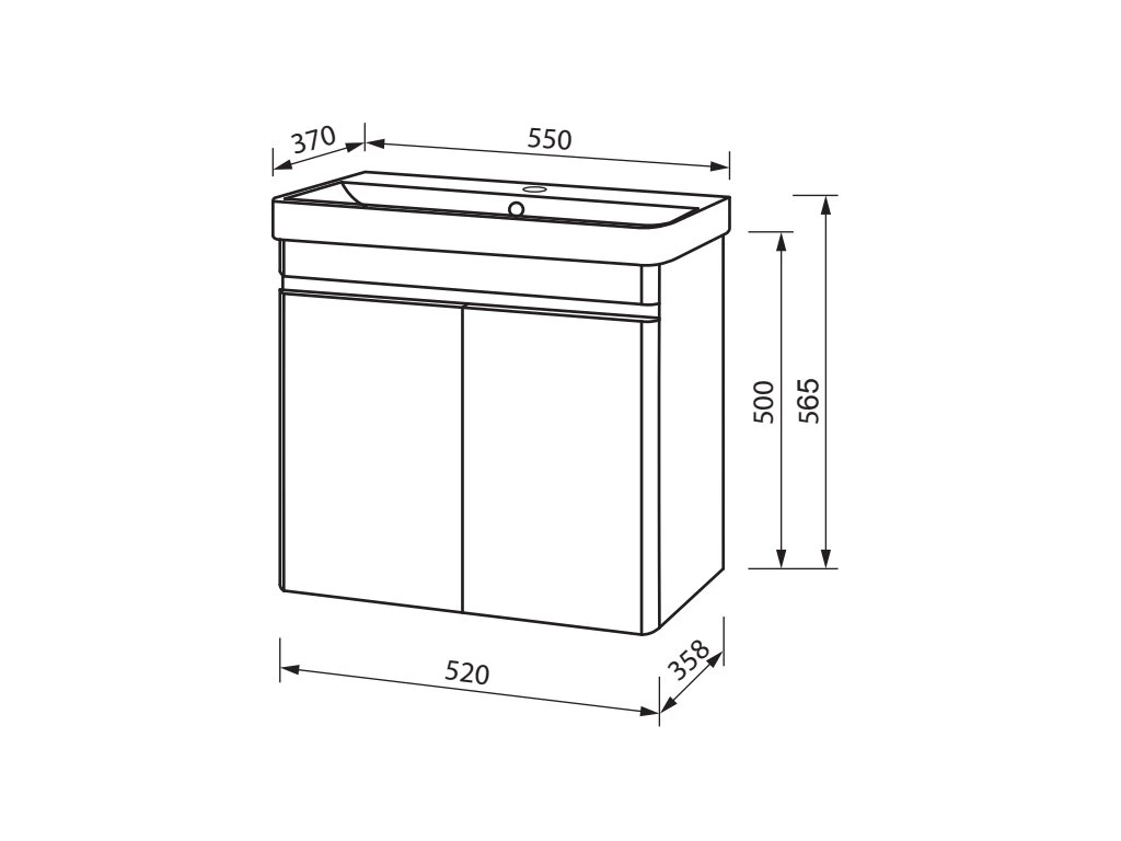 - rozměry včetně umyvadla - 55 x 30 x 56,5 cm (šířka, hloubka, výška)