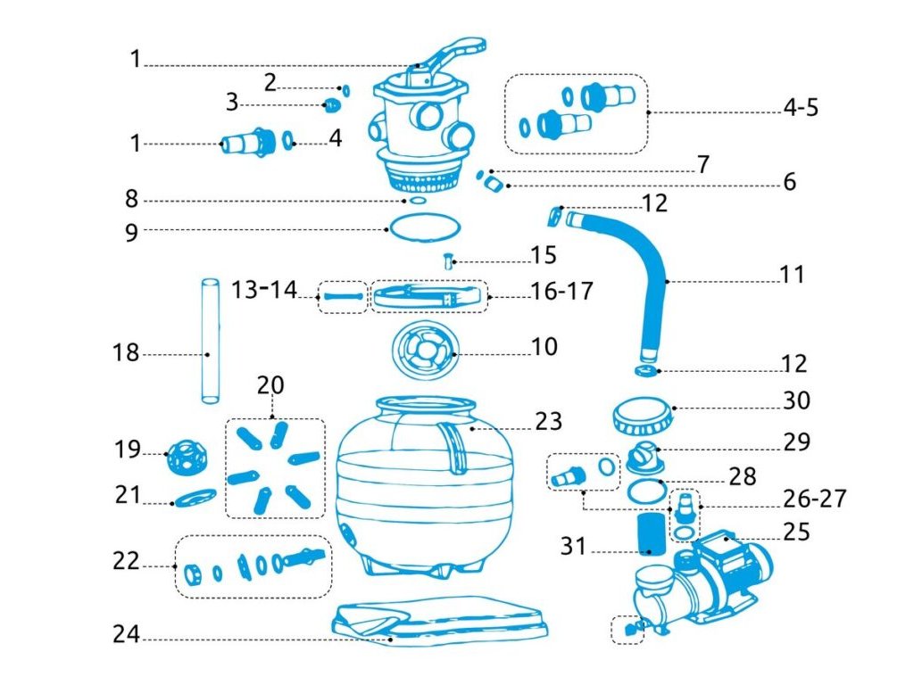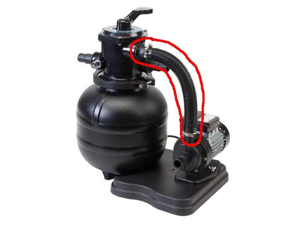 Propojovací hadice mezi čerpadlo a filtrační nádobu. Délka hadice je 38 cm.