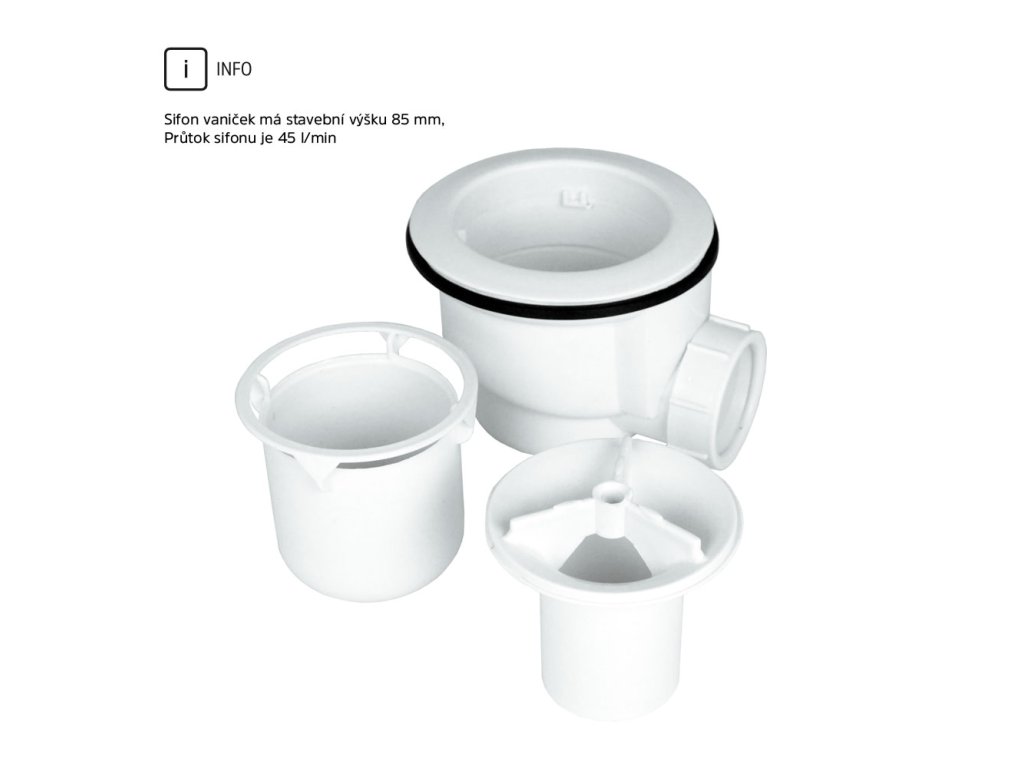 Varianta montáže litých vaniček (nožičky a panel nejsou součástí balení):