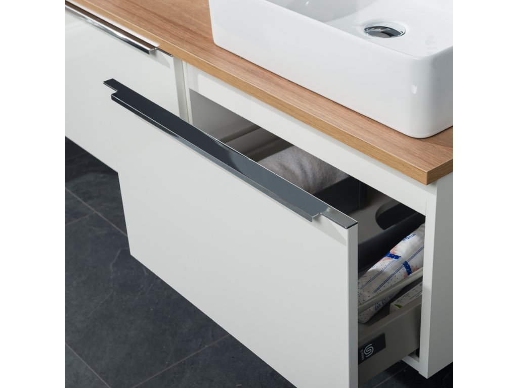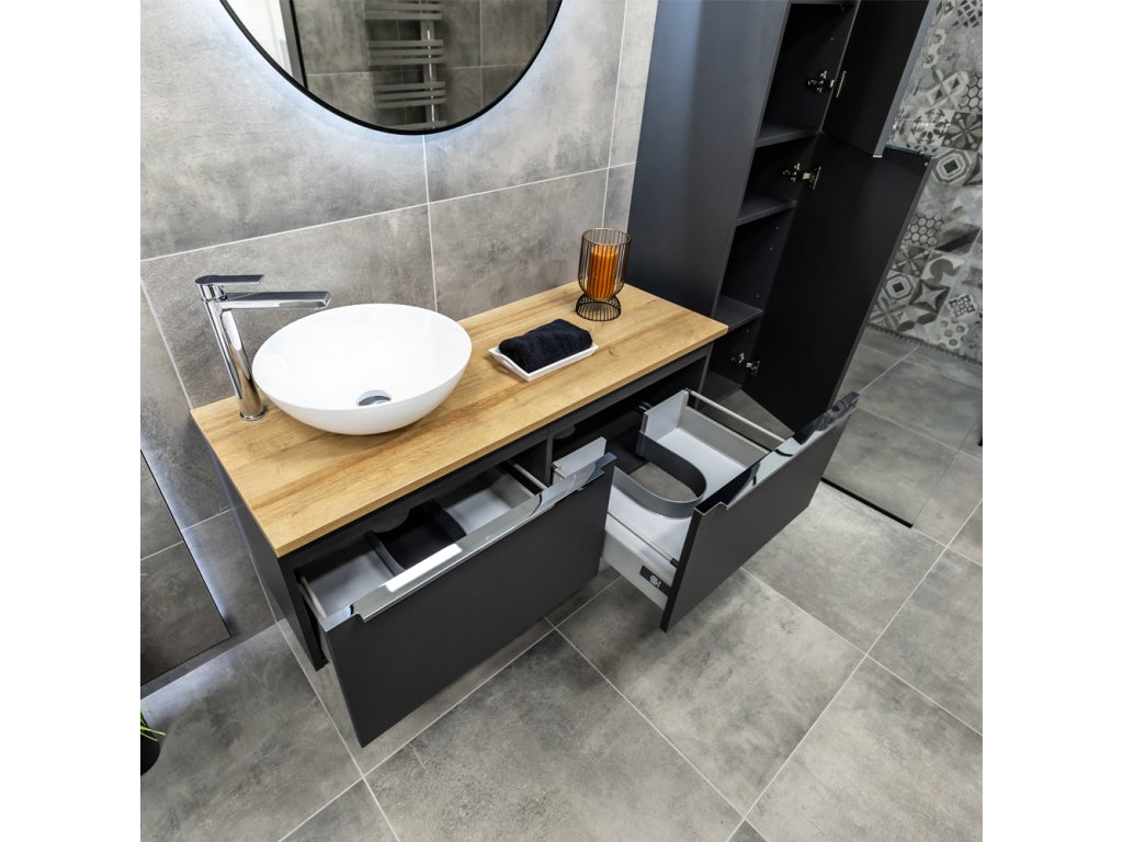 Série koupelnového nábytku Mailo umožňuje kombinovat skříňky do mnoha různých variant. Vytvořit tak lze jak složité kombinace do velkých koupelen, tak minimalistické řešení v moderním designu. Šuplíky jsou vybaveny designovými chromovanými úchytkami a značkovými pojezdy Strong s pomalým dovíráním. Na výběr je ze tří barevných kombinací, bílá lesk, dub Riviera a antracitově šedá. Skříňky jsou dodávány smontované a všechny jsou určené k zavěšení.Doplňkové parametry