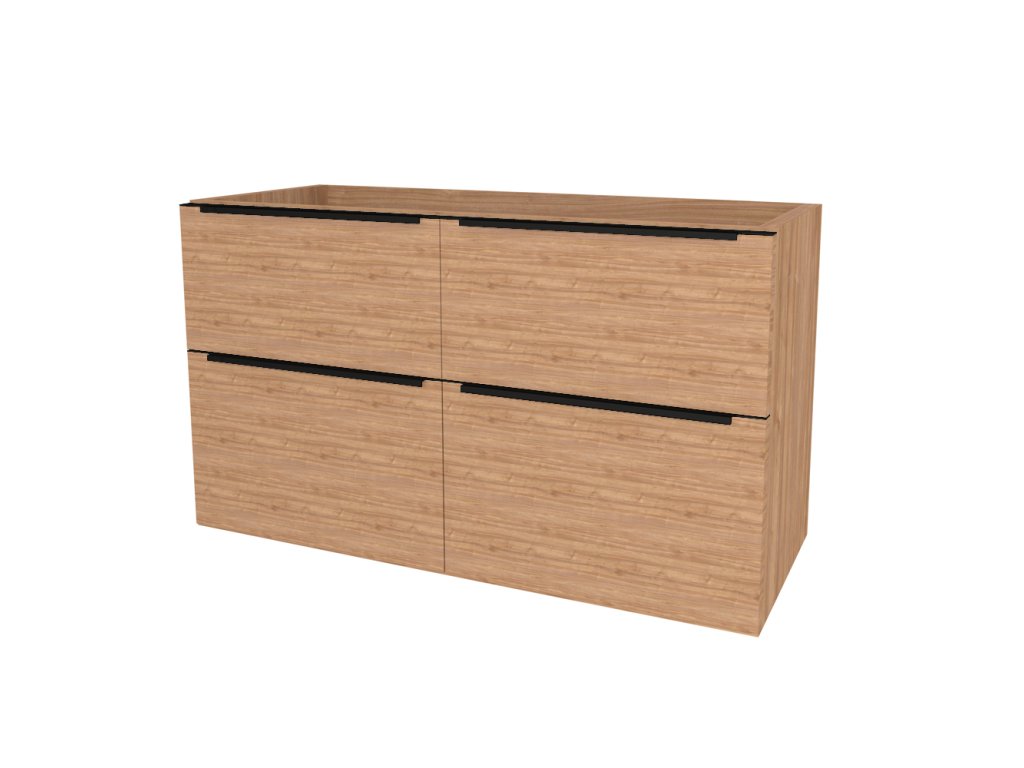 Zakázková výroba, Mailo, koupelnová skříňka 1205x700x476 mm, spodní, 4 zásuvky, černé madlo, Multidecor, Light Select Walnut. Možno kombinovat s umyvadlem, popř. s koupelnovou deskou na skříňku.