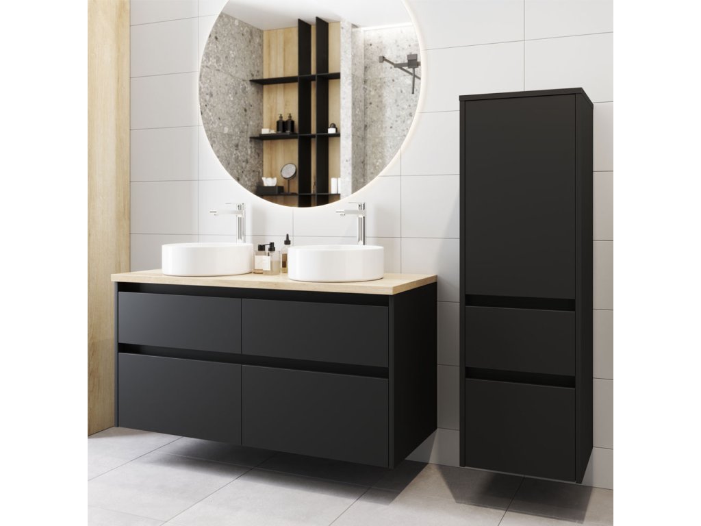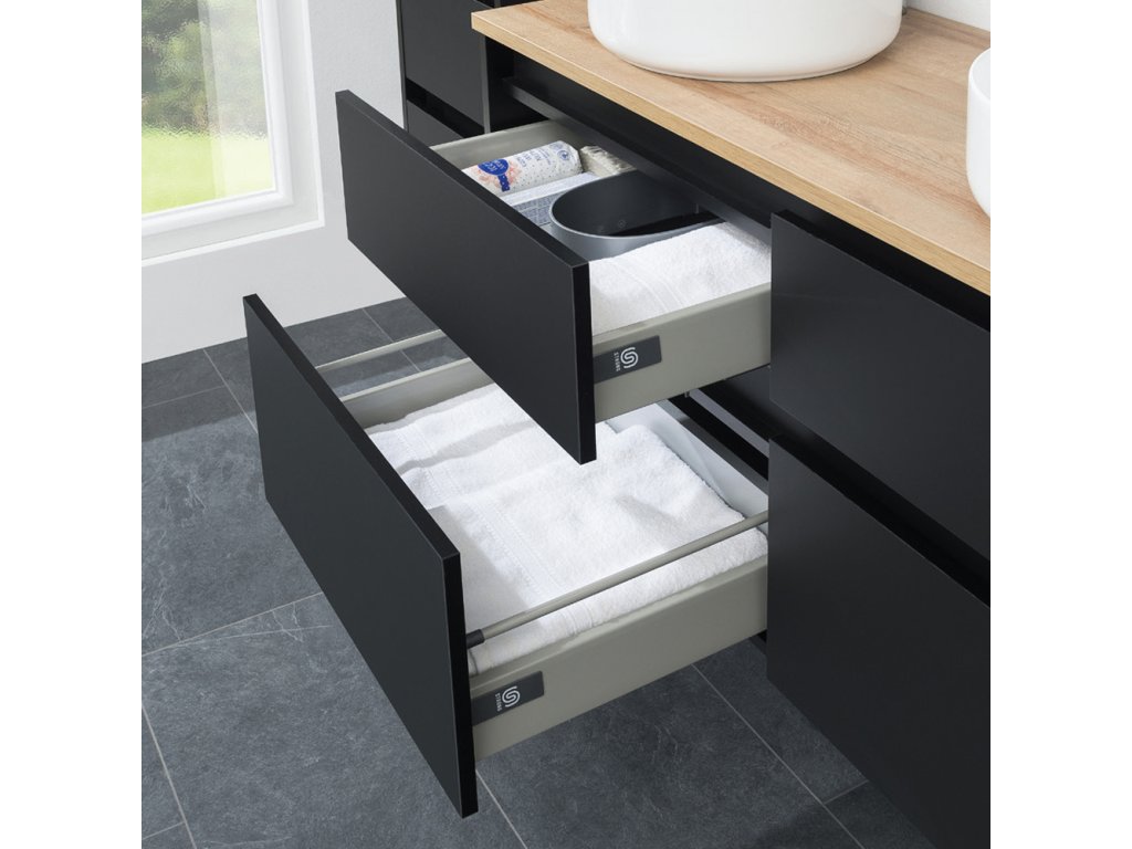 Série koupelnového nábytku Opto umožňuje kombinovat skříňky do mnoha různých variant. Vytvořit tak lze jak složité kombinace do velkých koupelen, tak minimalistické řešení v moderním designu. Šuplíky jsou osazeny značkovými pojezdy Strong s pomalým dovíráním. Na výběr je ze tří barevných kombinací, bílá lesk, dub Riviera a černá supermat. Skříňky mají laserové opracování hran a jsou dodávány smontované a všechny jsou určené k zavěšení.Umyvadlo z litého mramoru je ošetřeno povrchovou úpravou Gel coat. Jedná se o ochrannou vrstvu, která zajišťuje stálobarevnost a zvyšuje odolnost proti nárazu. Umyvadlo je určeno pro nábytek, nelze instalovat samostatně na zeď. Zápustná umyvadla podpoří moderní a elegantní vzhled každé koupelny a doladí tak celkový design interiéru. Umyvadla lze osadit do desky i ve více kusech vedle sebe.
