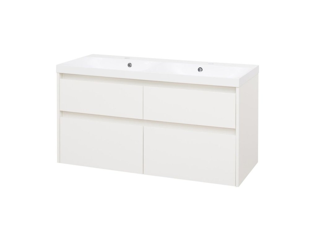 Mereo Opto, koupelnová skříňka s umyvadlem z litého mramoru 121 cm, bílá CN913M