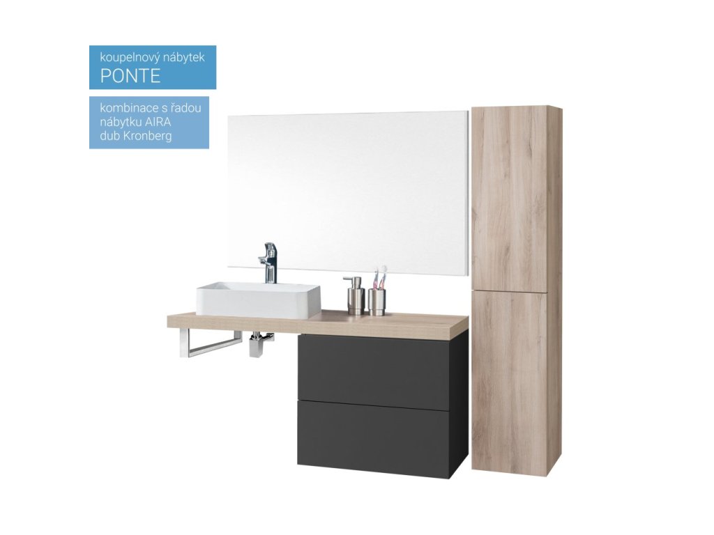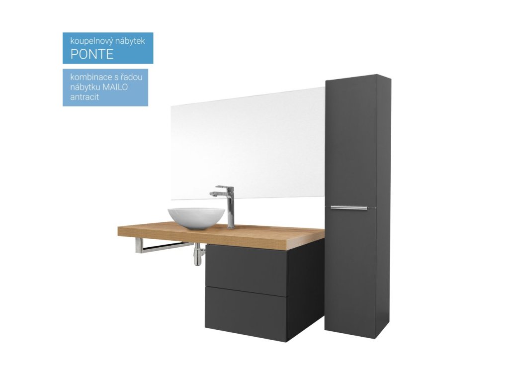 Série koupelnového nábytku Ponte umožňuje kombinovat skříňky a desky do různých variant. Umožňuje vytvořit kombinace do velkých koupelen i minimalistické řešení v moderním designu. Otevírání zásuvek je řešeno systémem push-open, tedy otevírání bez úchytek. Zásuvky jsou osazeny kvalitním německým kováním značky BLUM s pomalým dovíráním. Na výběr je mnoho barevných variant, Multidecor. Skříňky jsou dodávány ve smontovaném stavu a všechny jsou určeny k zavěšení.Doplňkové parametry