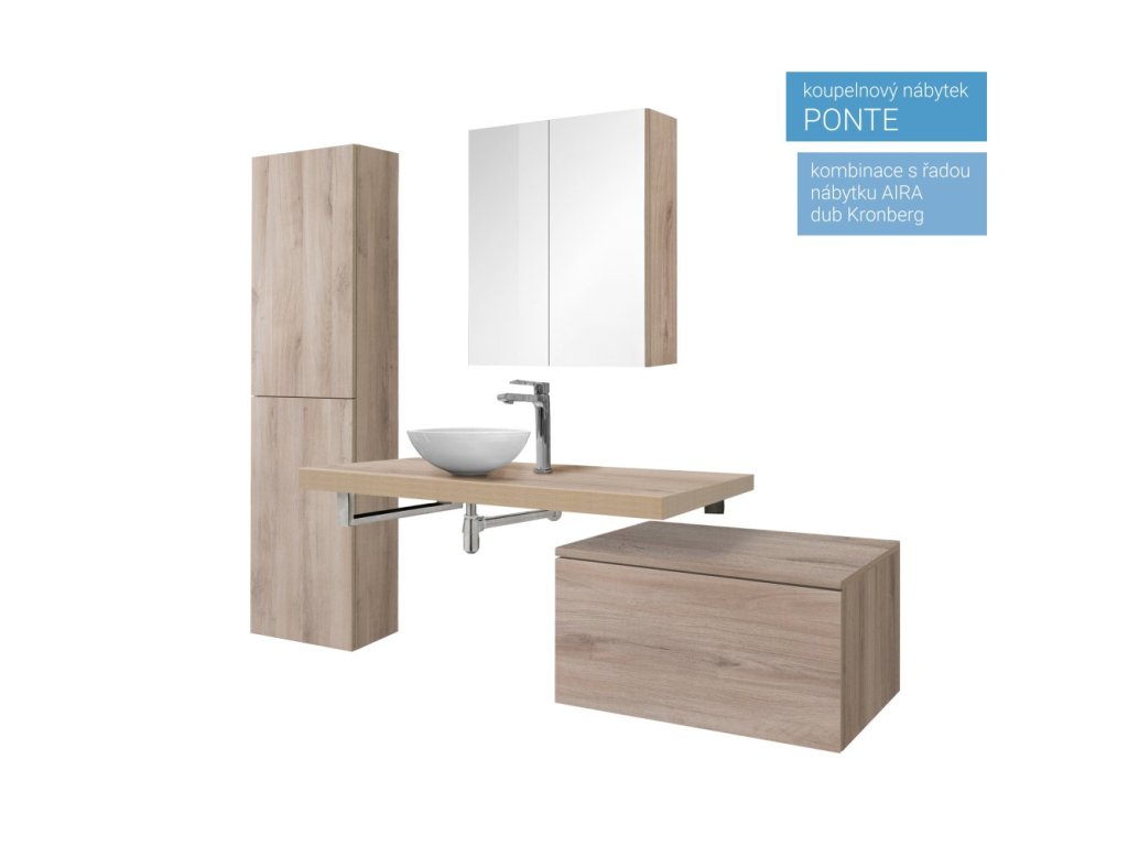 Série koupelnového nábytku Ponte umožňuje kombinovat skříňky a desky do různých variant. Umožňuje vytvořit kombinace do velkých koupelen i minimalistické řešení v moderním designu. Otevírání zásuvek je řešeno systémem push-open, tedy otevírání bez úchytek. Zásuvky jsou osazeny kvalitním německým kováním značky BLUM s pomalým dovíráním. Na výběr je mnoho barevných variant, Multidecor. Skříňky jsou dodávány ve smontovaném stavu a všechny jsou určeny k zavěšení.Doplňkové parametry