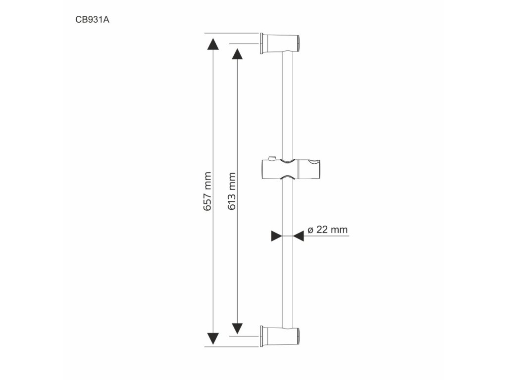 Držák sprchy 600 mm, nerezová tyč ø 22 mm, ostatní současti z pochromovaného plastu