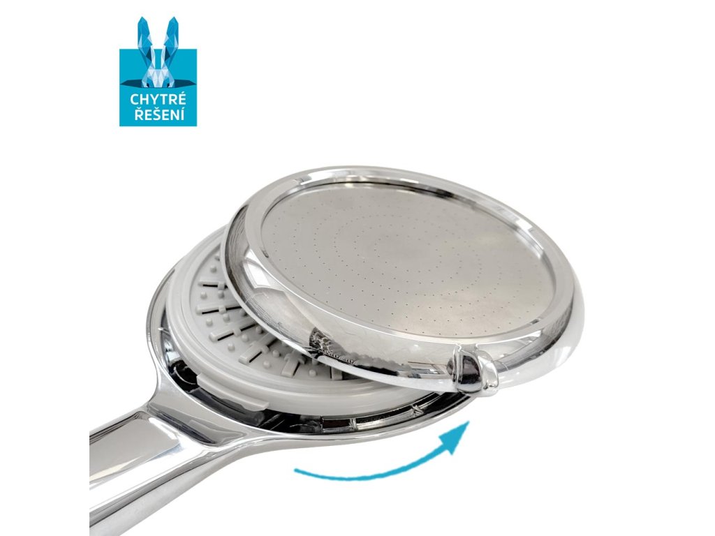 Ruční sprcha s regulací průtoku a funkcí vypnutí proudu vody, nerez/plast/chrom