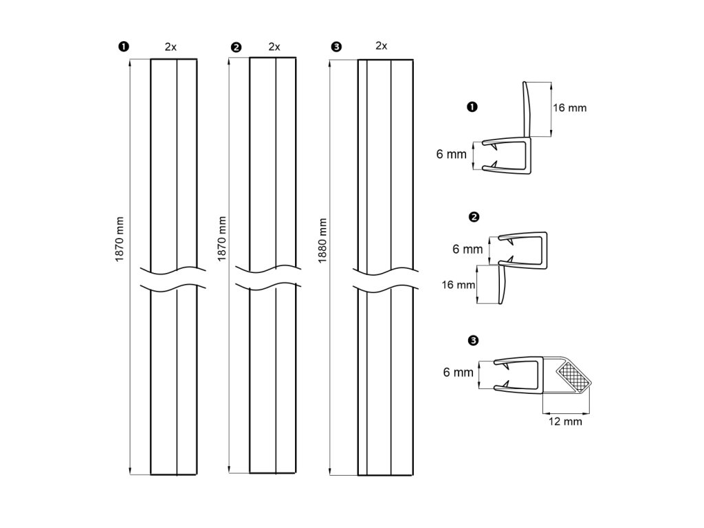 Sada těsnění pro CK608xxK, (posuvné dveře 2ks, fixní sklo 2 ks, mag. lišty 45° 2 ks)Doplňkové parametry