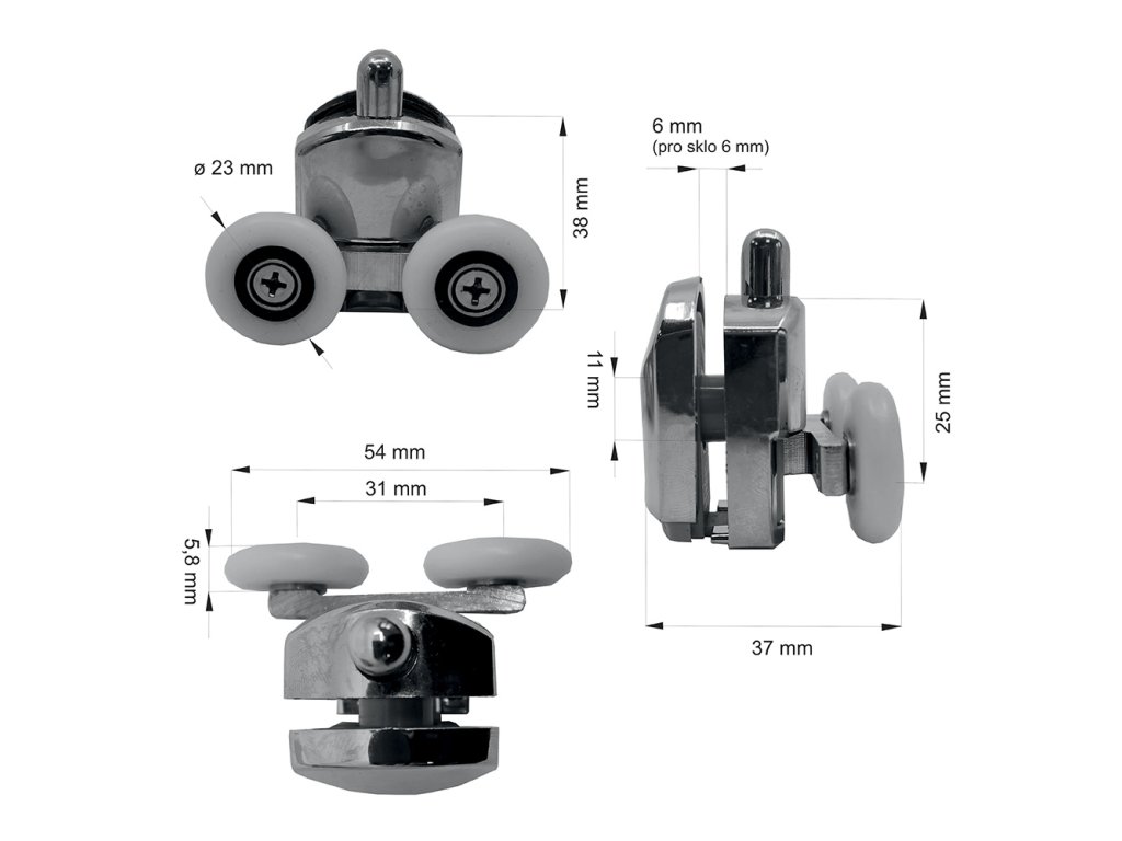 Sady pojezdů- spodní, pro kouty a dveře LIMA CK608xxK, CK804xxK, sada 4 ks
