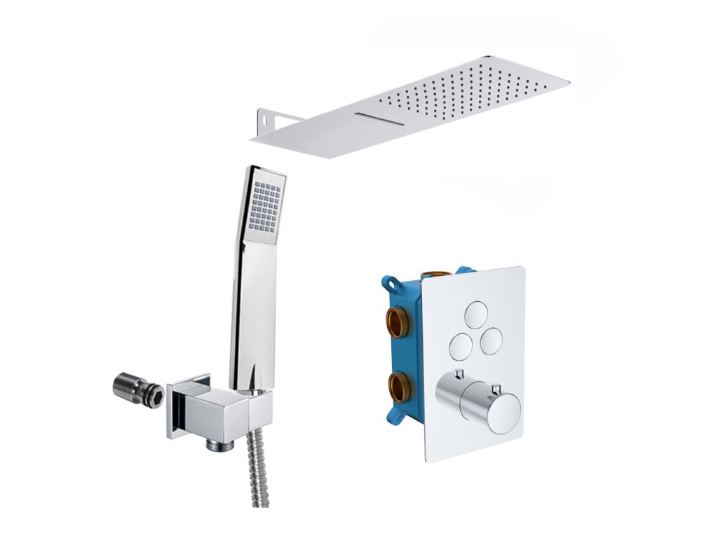 Sprchová sada s termostatickou podomítkovou tlačítkovou baterií - 3-cestná - hranatý kryt