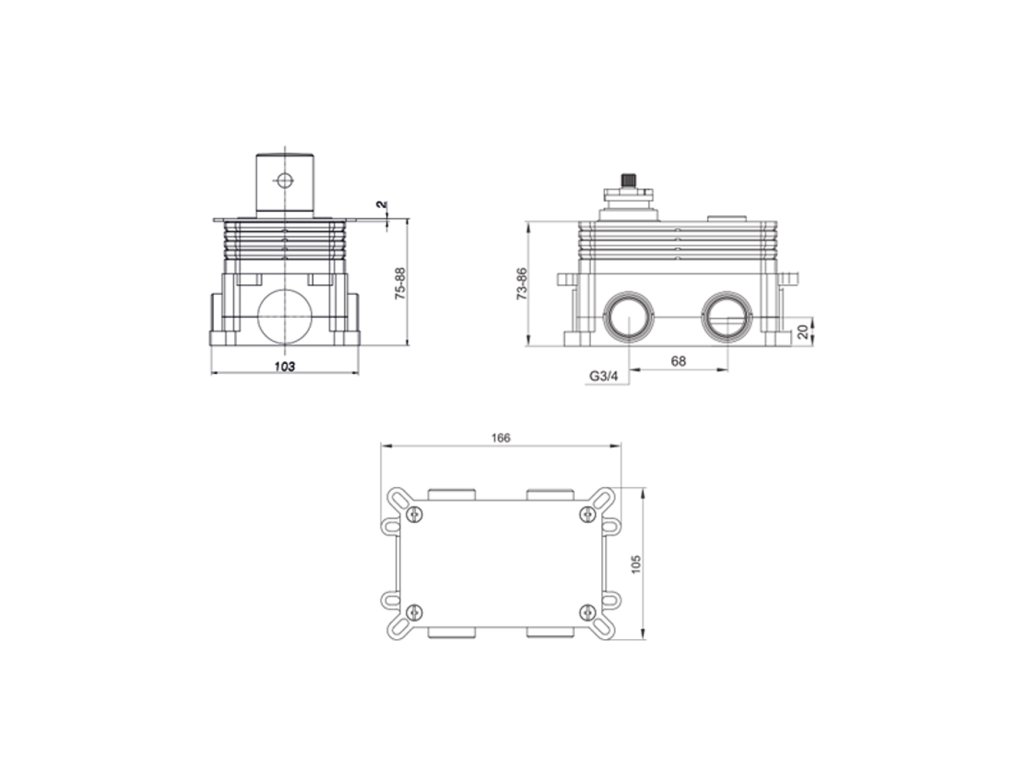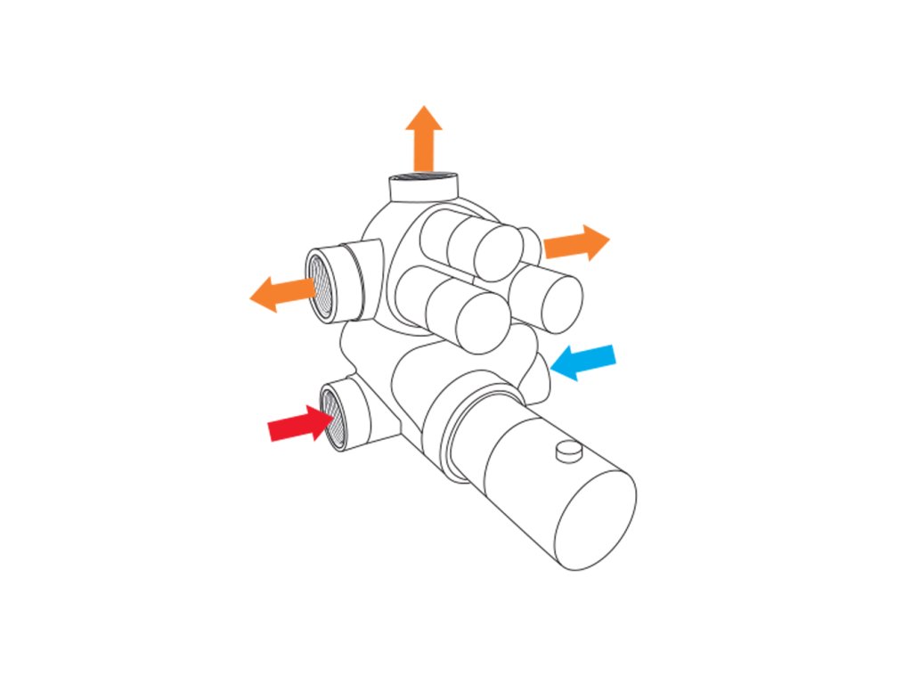 Třícestná varianta (přepínání tří poloh tlačítkem) je určena do sprchových koutů s ruční, hlavovou sprchou a dalším zdrojem tekoucí vody, např. vodopádem.