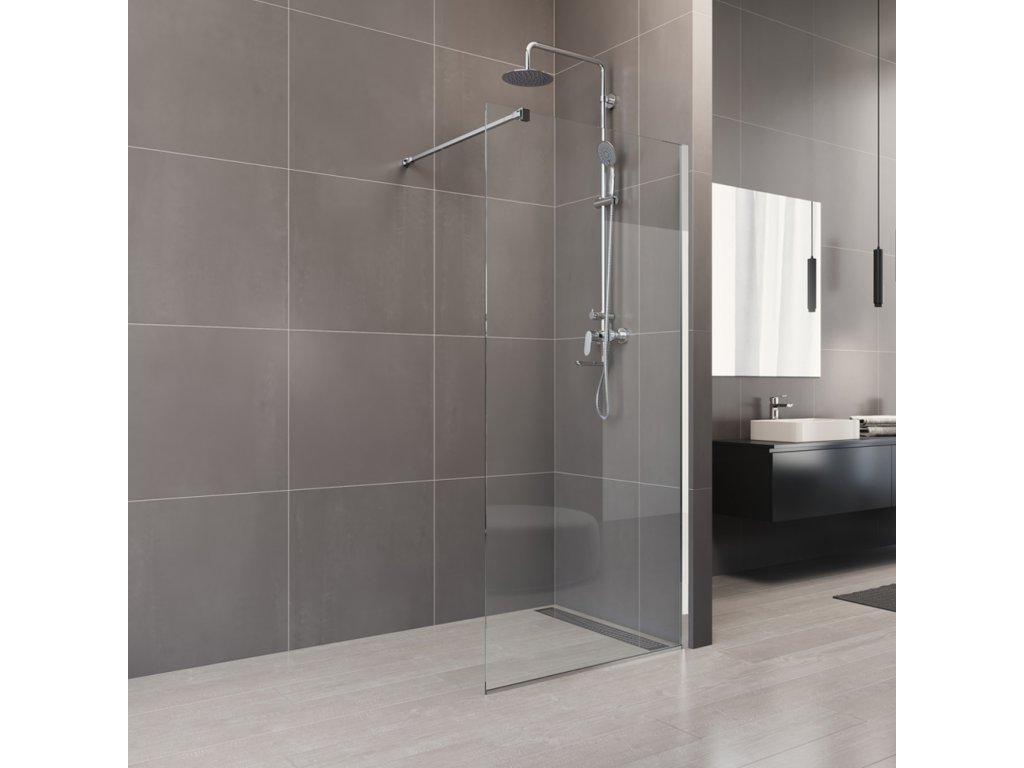 Sprchové stěny WALK IN jsou jediné, které se vám opravdu přizpůsobí. Sestavte si svůj sprchovací prostor na míru. Sprchový kout typu WALK IN si můžete poskládat v několika možných kombinacích. Stabilitu bezpečnostní skla zajišťuje elegantní kovová vzpěra a v případě montáže na zeď i boční stavitelný profil, které nenarušují designovou čistotu celého koutu, nejedná o hermeticky uzavřený výrobek.
