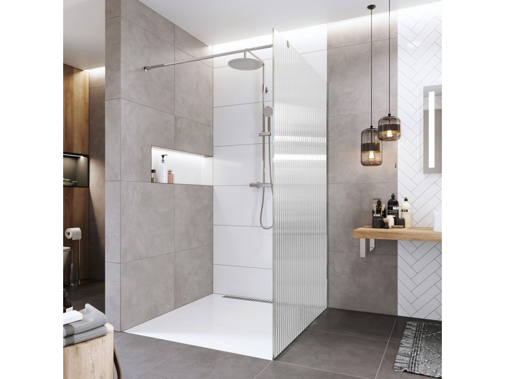 Sprchové stěny WALK IN jsou jediné, které se vám opravdu přizpůsobí. Sestavte si svůj sprchovací prostor na míru. Sprchový kout typu WALK IN si můžete poskládat v několika možných kombinacích. Stabilitu bezpečnostní skla zajišťuje elegantní kovová vzpěra a v případě montáže na zeď i boční stavitelný profil, které nenarušují designovou čistotu celého koutu, nejedná se však o hermeticky uzavřený výrobek.