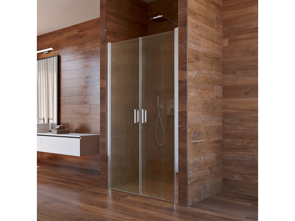 Hliníkové profily v barvě chrom, dveře dvoukřídlé, lítací, sklo Point, síla skla 6 mm, rozměr 1000 mm, výška 1900 mm
