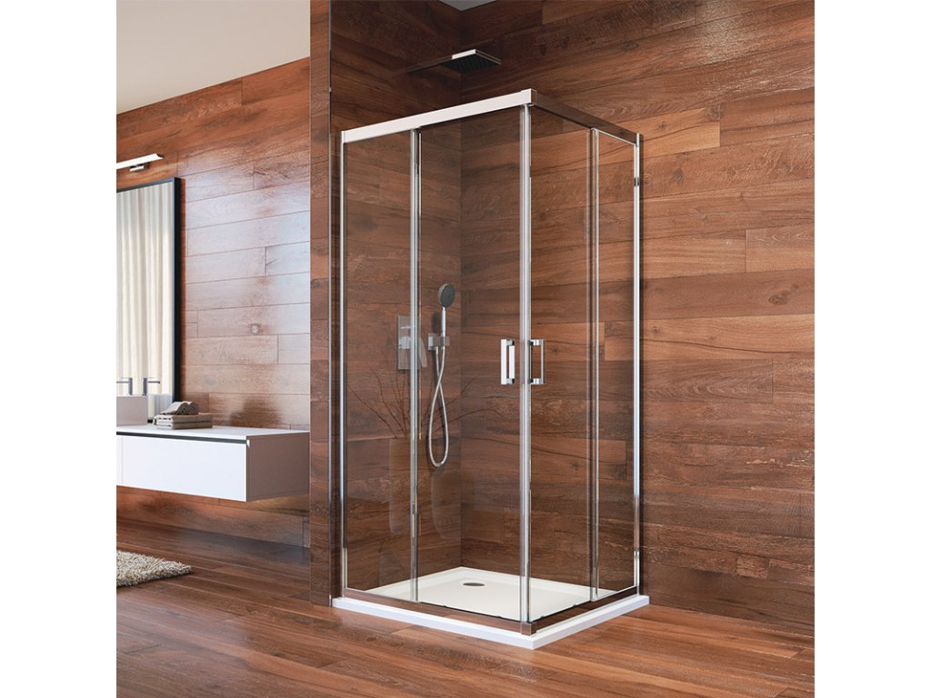 Hliníkové profily v barvě chrom, dveře posuvné, sklo Čiré, síla skla 6 mm, čtverec, rozměr 900 x 900 mm, výška 1900 mm