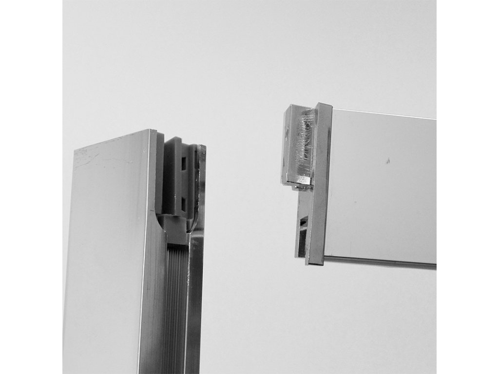 Hliníkové profily v barvě chrom, dveře pivotové, sklo Point, síla skla 6 mm, rozměr 800x800x800 mm, výška 1900 mm.