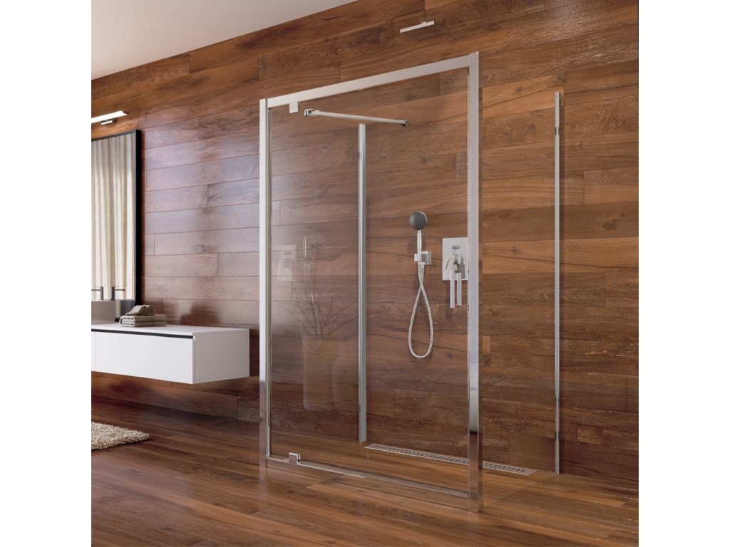 Hliníkové profily v barvě chrom, dveře pivotové, sklo Point, síla skla 6 mm, rozměr 1000x800x1000 mm, výška 1900 mm.