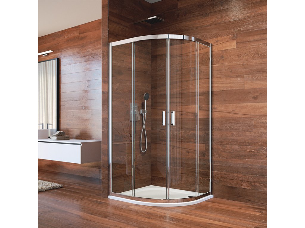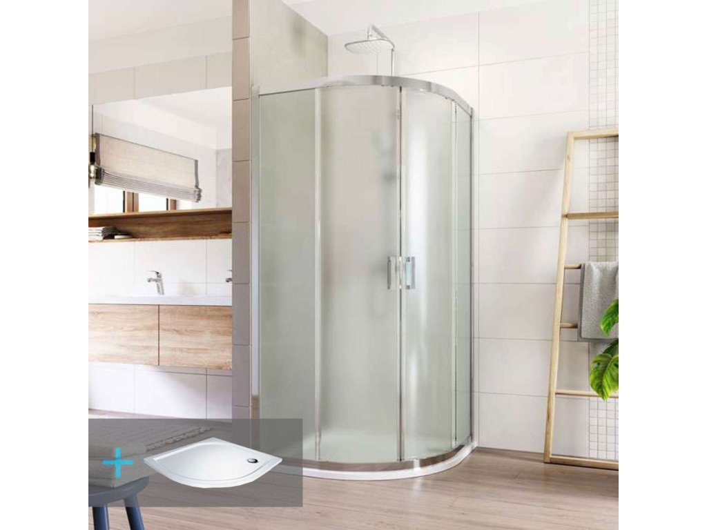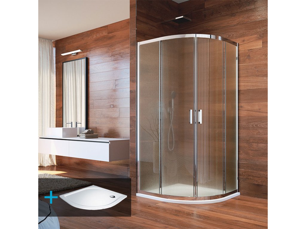 Mereo Sprchový set: LIMA, čtvrtkruh, 100x190 cm, R 550, chrom ALU, sklo Point, vanička z litého mramoru CK608B62KM