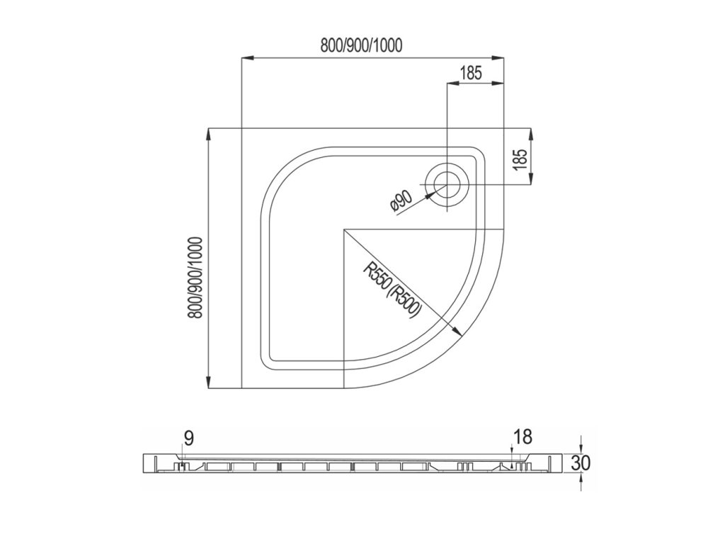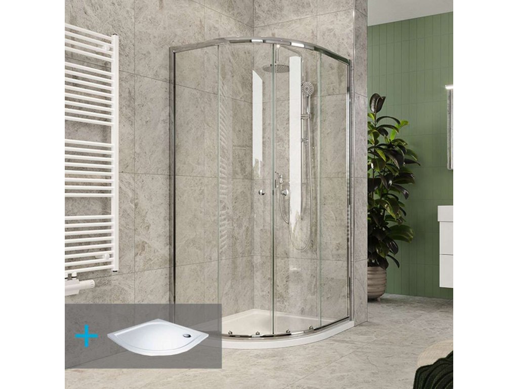 Set čtvrtkruhového sprchového koutu, síla skla 4 mm, vaničky z litého mramoru CV05M včetně sifonu, bez nožiček.
