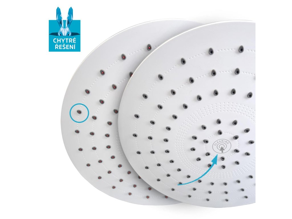 Talířová hlavová sprcha o průměru ø 226 mm se vyznačuje moderním designem, vysokou variabilitou a především umožňuje téměř libovolnou kombinaci s příslušenstvím sprchového programu. Tato hlavice disponuje funkcí Push Clean pro ještě snadnější čištění. Funkce spočíva v tom, že po zatlačení na talíř sprchy, vyjedou z trysek červené "bodlinky", které vytlačí ven všechny usazeniny. Talíř je možné natočit pomocí výkyvného kloubu.