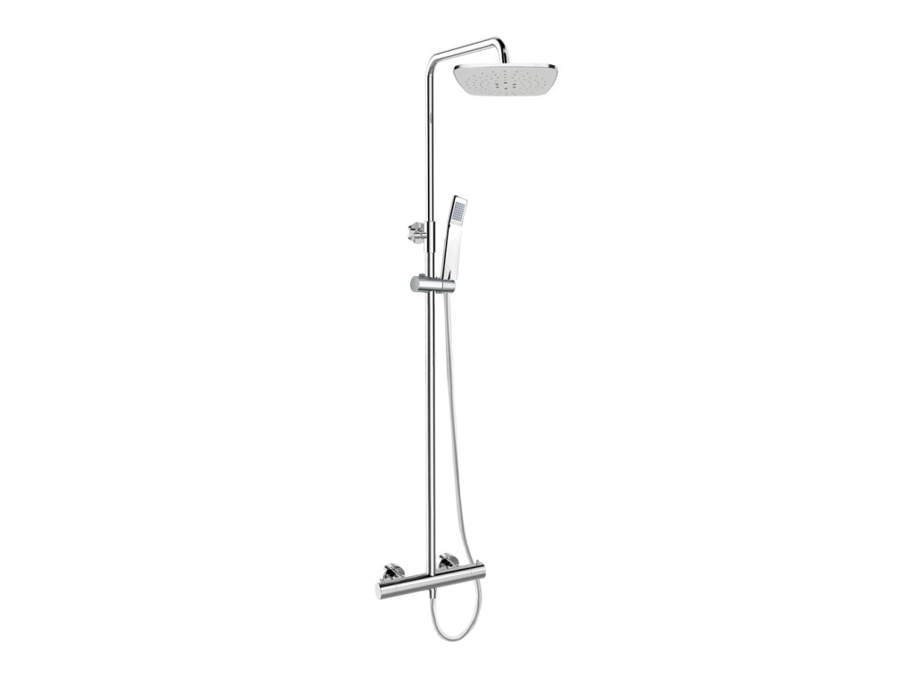 Termostatická nástěnná sprchová baterie 150 mm, s nastavitelnou teleskopickou tyčí, nerezovou sprchovou hadicí 150 cm, ruční a talířovou hranatou sprchou, 225x225 mm, šedá