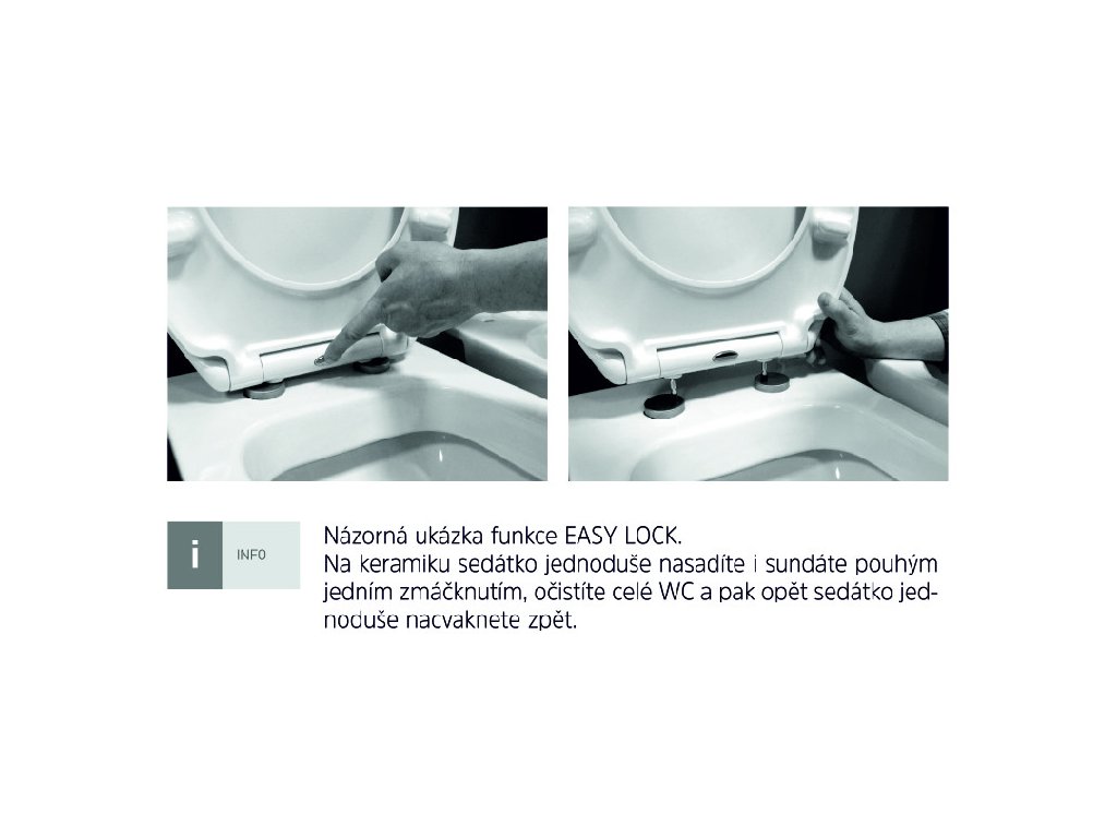 - easy lock: systém umožňující jednoduchým stlačením odejmout WC sedátko od mísy (zvyšuje úroveň hygieny toalety)