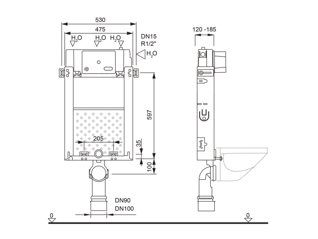 • Zazdívací prvek s podomítkovou nádržkou pro závěsné WC mísy