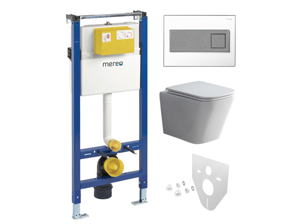 Mereo WC set - Smart flush rimless WC hranaté, modul pro sádrokarton, hranaté tlačítko bílá/chrom MM02NSETRT330