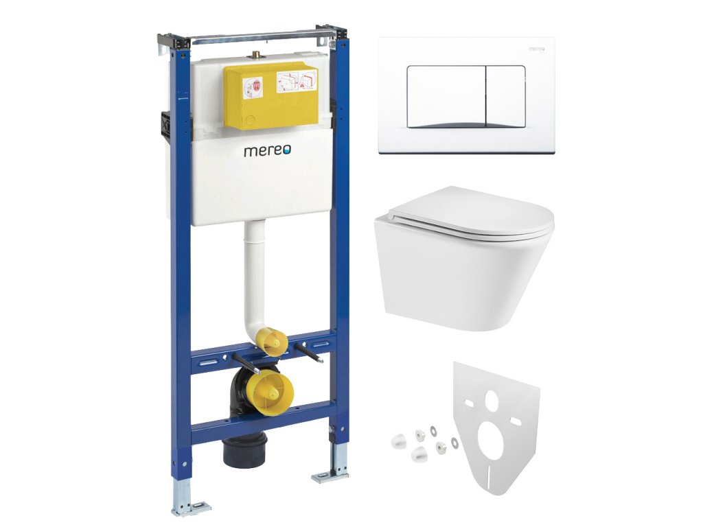 Mereo WC set - Smart flush rimless WC oblé, modul pro sádrokarton, bílé hranaté tlačítko MM02NSETRT520