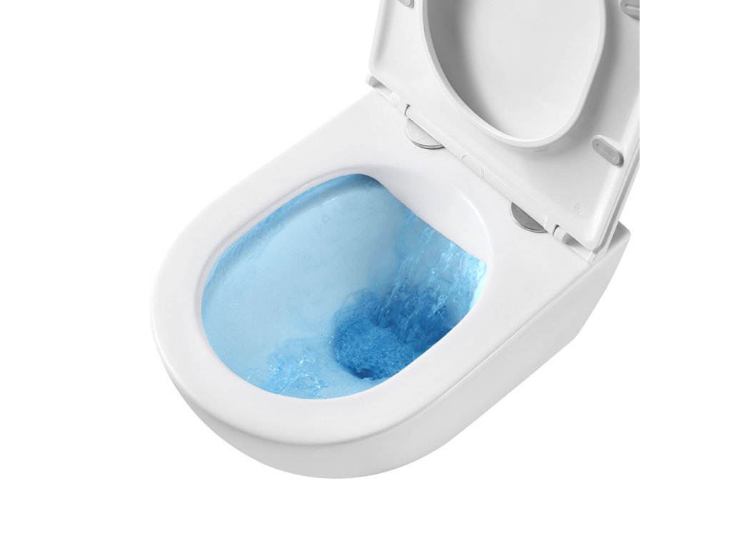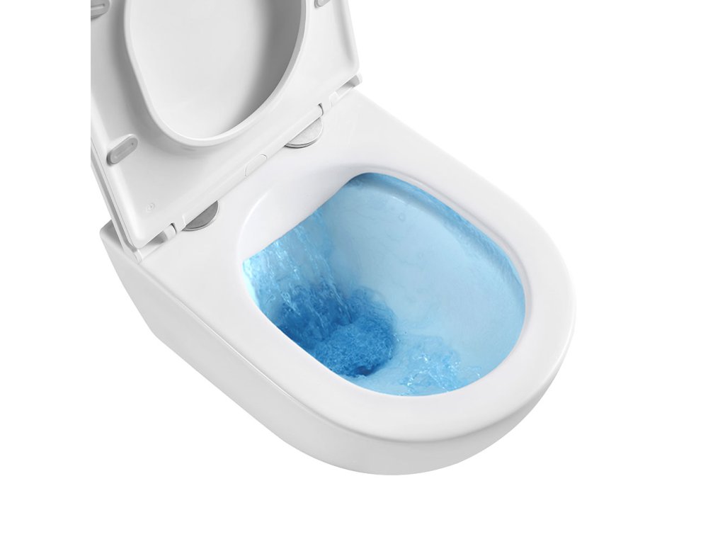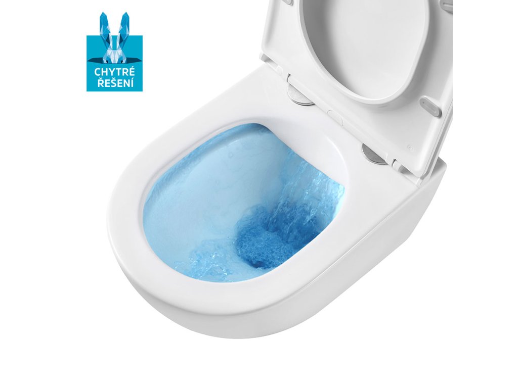 Díky novému tvaru mísy odpadá složité čištění splachovacího žlábku pod okrajem mísy, který je používaný na klasických klozetech, a kde by se mohly hromadit bakterie, špína a usazeniny.