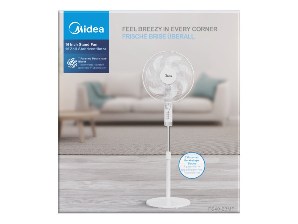 MIDEA Stojanový ventilátor, 7 lopatek, bílý, M-FS40-23MT