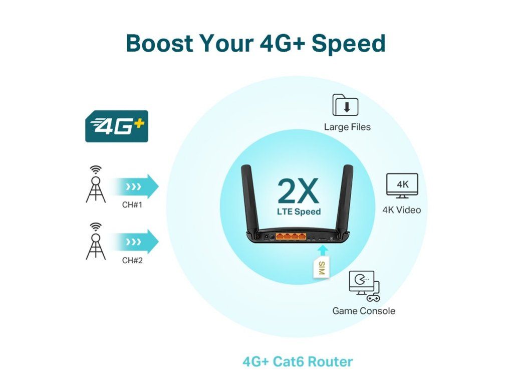 Díky integrovanému 4G LTE modemu a slotu na SIM kartu pouze vložíte SIM kartu a zapnete router. To stačí k vytvoření rychlé a stabilní Wi-Fi připojení v síti 4G LTE, které nikdy nebylo jednodušší.
