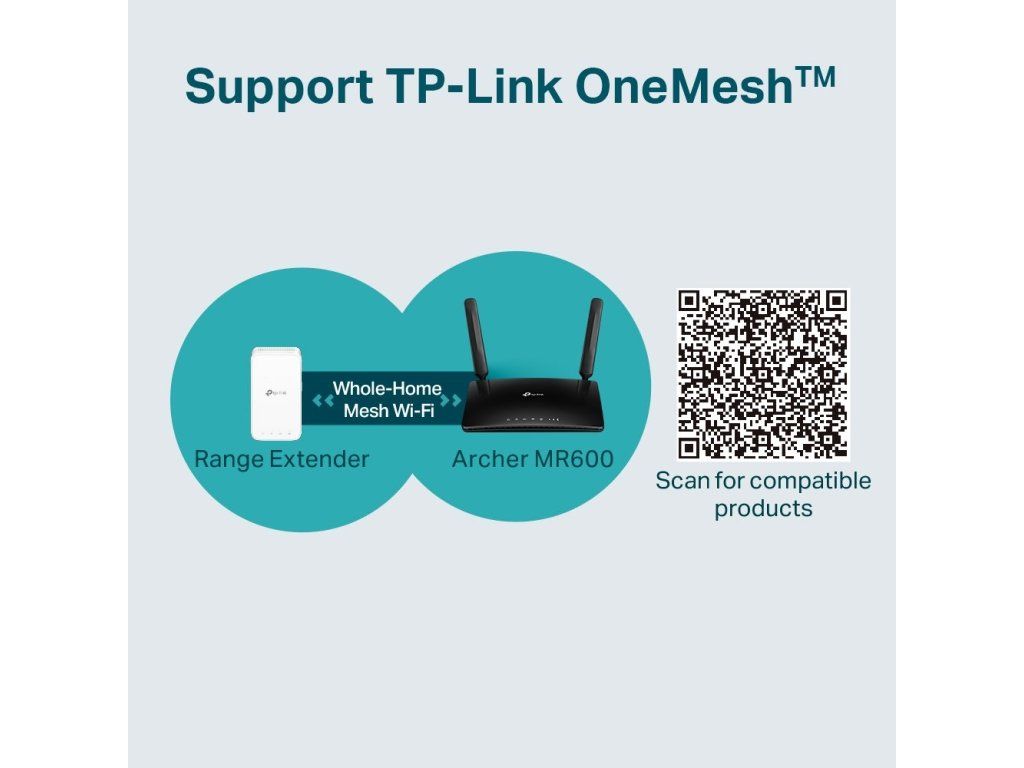 Obrovskou výhodou je možná spolupráce s produkty TP-Link OneMesh, která přinese flexibilnější a nákladově efektivnější síť Mesh s jediným názvem Wi-Fi pro bezproblémové pokrytí v celé domácnosti. Eliminuje slabé oblasti signálu jednou provždy. Pokročilá technologie Mesh zařídí, aby si zařízení automaticky vybralo nejlepší možné spojení při pohybu po domácnosti.