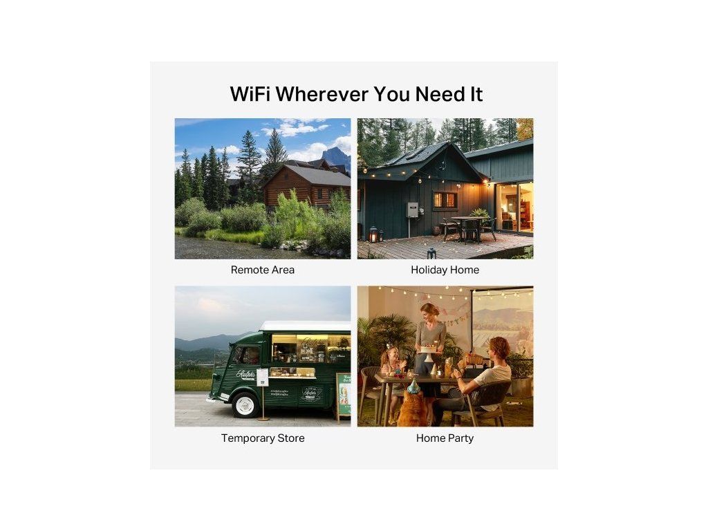 Dopřejte si kvalitní síť, i když bydlíte mimo dosah běžného širokopásmového připojení. Dvoupásmová Wi-Fi poskytuje rychlost připojení až 300 Mbit/s v pásmu 2,4 GHz a 867 Mbit/s v pásmu 5 GHz. Stahovat data budete rychlostí až 150 Mbit/s. Přístup k internetu můžete sdílet až s 64 zařízeními. Pokud se vám nedaří připojit k síti 4G, jednoduše zapojíte ethernetový kabel do portu LAN/WAN.