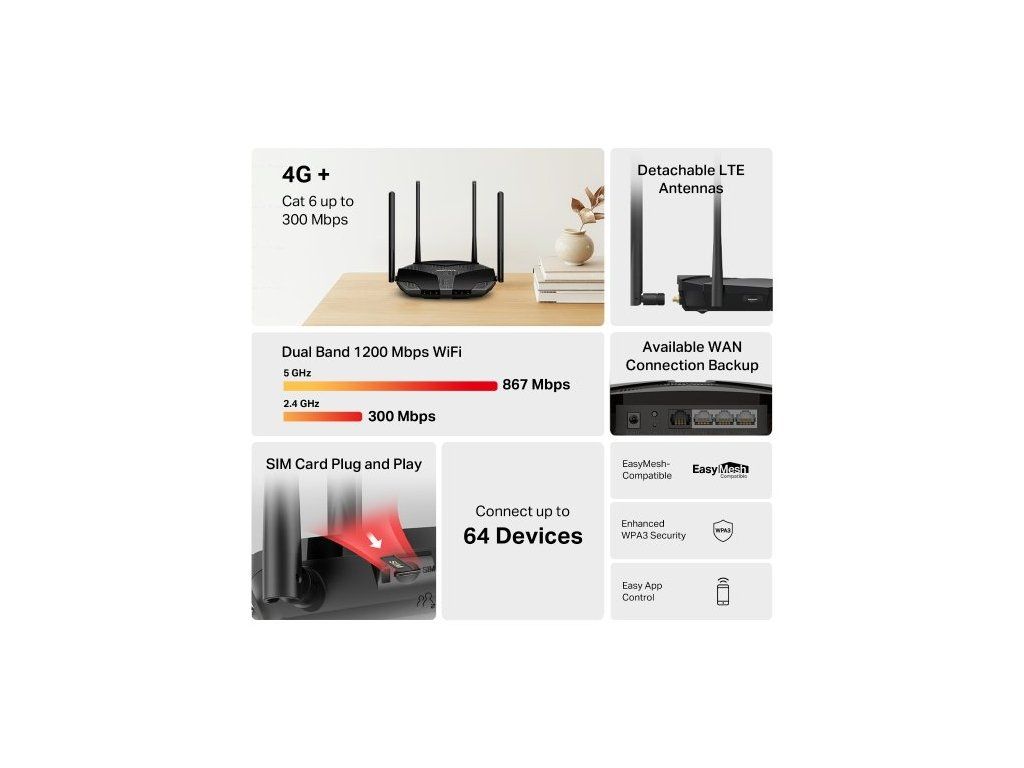 Modem TP-Link Mercusys MB235-4G AC1200, LTE s WiFi routerem, 3x GLAN, 1x GWAN, 1x slot SIM, 2,4/5GHz, 52440052