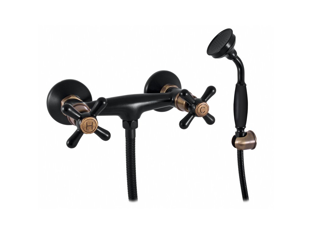 MORAVA RETRO - Sprchový set s baterií, Černá matná/Stará mosaz (Bronz) MK180.5/1CMATSM, RAV Slezák