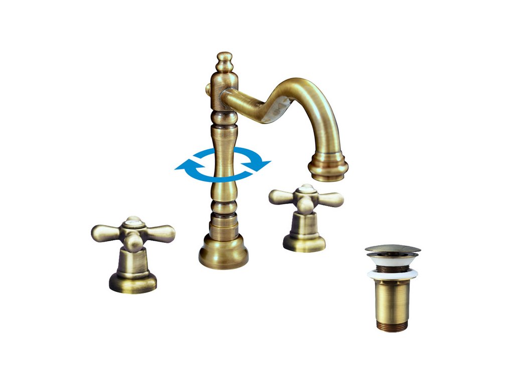 MORAVA RETRO - Umyvadlová baterie s výpustí, Stará mosaz (Bronz) MK132.0SM, RAV Slezák