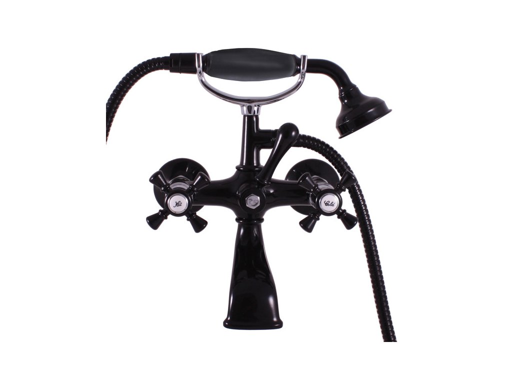 Vodovodní baterie vanová nástěnná s vidlicí na odkládání sprchy a se sprchou.