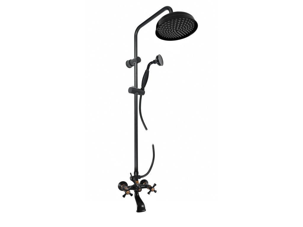 Vodovodní baterie vanová MORAVA RETRO s hlavovou a ruční sprchou se skládá z: