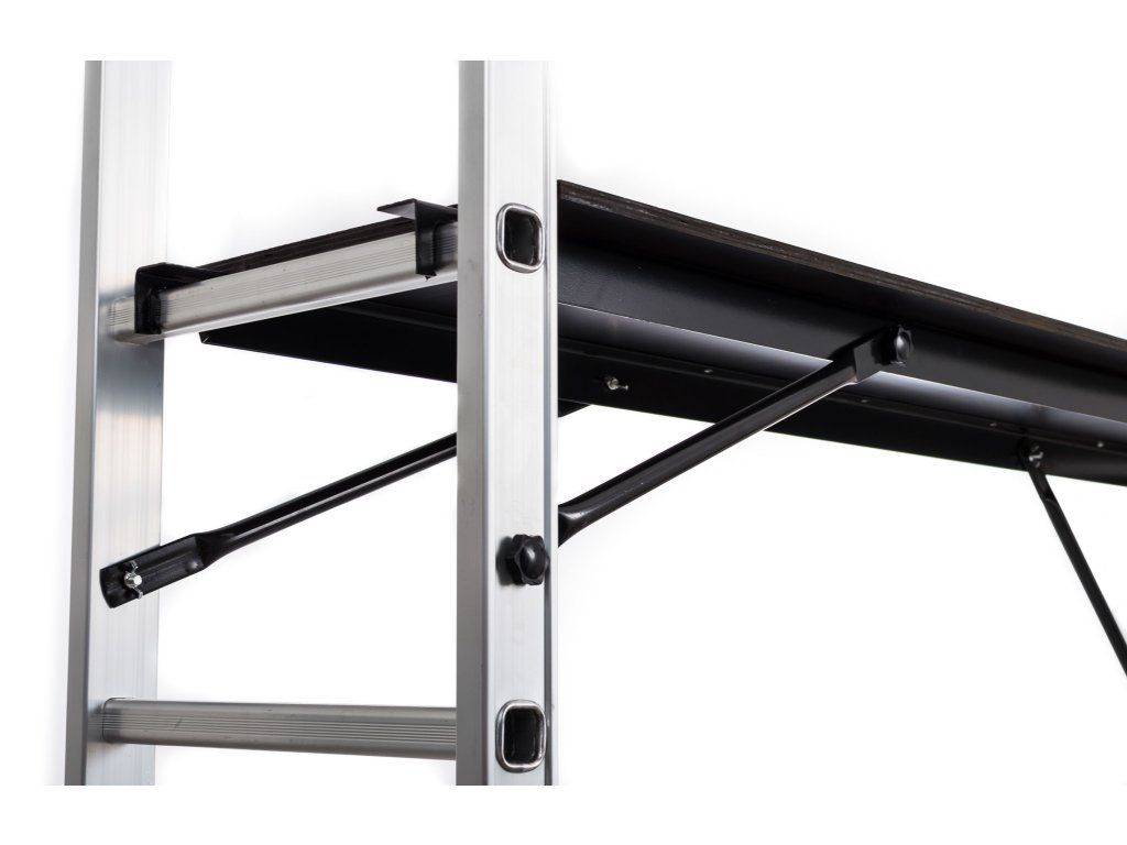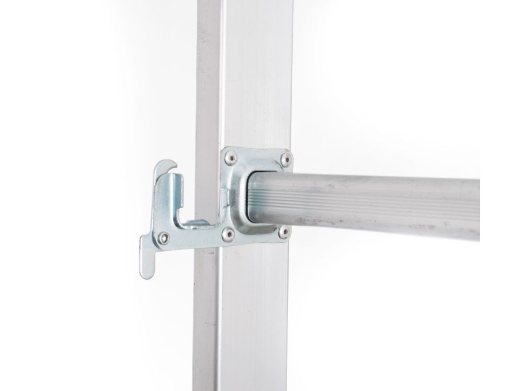 Toto hliníkové lešení můžete postavit i na schodech, díky regulaci výšky po příčkách. Je stabilní a díky svým rozměrům je vhodné i pro použití v interiéru, například při malování, které na klasických štaflích není příliš pohodlné.