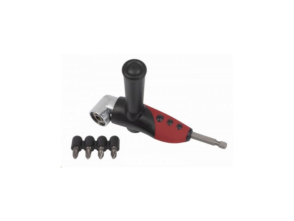 Úhlový držák bitů KRT063700 je dodáván se dvěma bity PH2 a dvěma bity PZ2 z CRV oceli a adaptérem 1". Součástí balení je i přídavné držadlo pro snadnější práci.