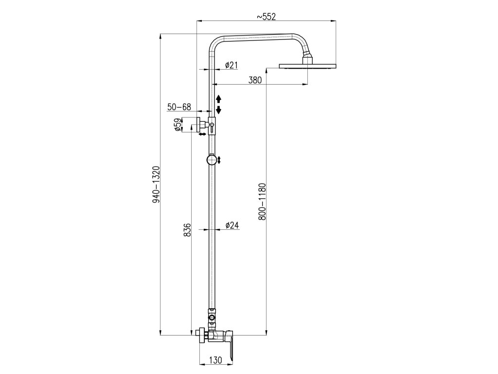 Vodovodní baterie sprchová NIL s hlavovou a ruční sprchou se skládá z: