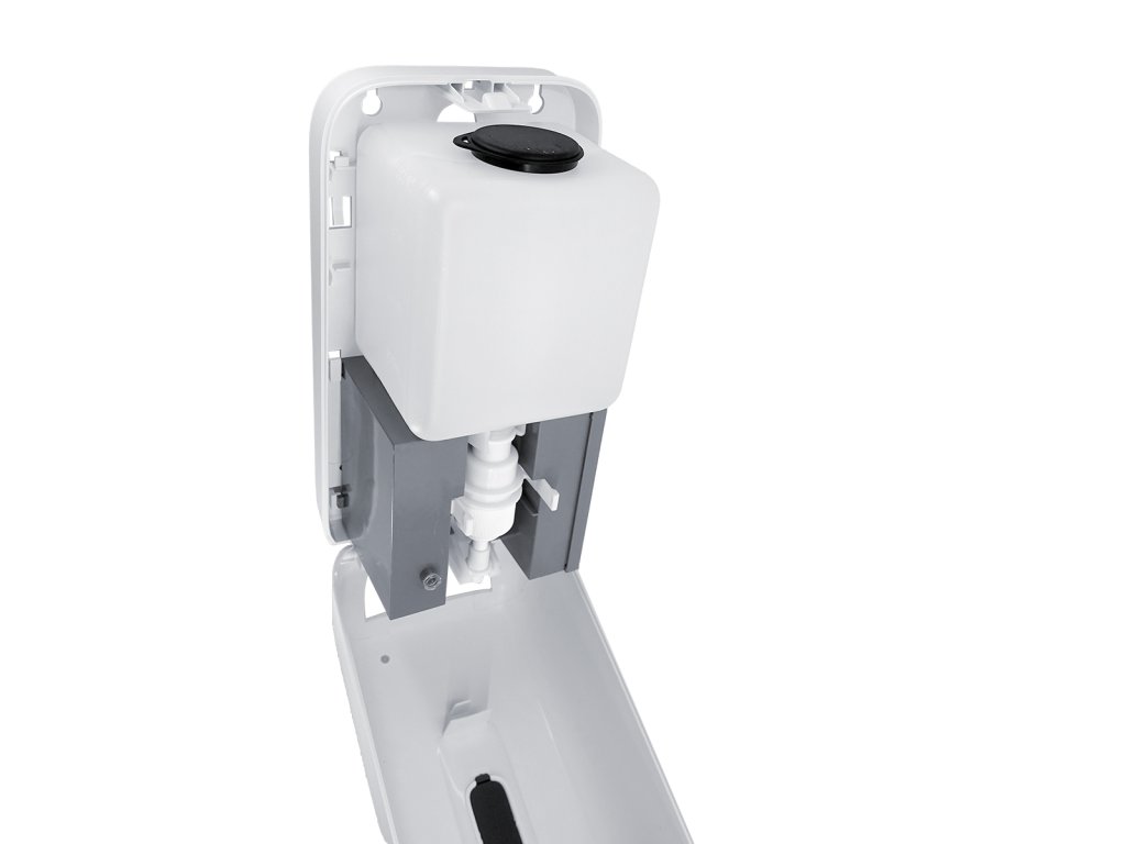 Bezdotykový dávkovač mýdla nebo dezinfekčního gelu 1l s odkapávačem a průzorem je skvělým doplňkem do koupelny. Balení obsahuje 4 šrouby, 4 hmoždinky, klíč k otevírání zásobníku, odkapávač. Výrobek je určený k navrtání i k nalepení. Lepidlo MAMUT ani baterie typu C nejsou součástí výrobku. Lepidlo lze dokoupit pod artiklovým číslem 35003TU. K nalepení bude potřeba 1 tuba lepidla MAMUT. Přístroj je nutné vybavit 4 ks baterií 1,5V typ C. Kvalitní baterie vydrží až 60 tis dávkování. Dobíjecí baterie jsou zakázány! Objem zásobníku 1000 ml. Životnost dávkovací pumpičky 300 tis dávek. Objem jedné dávky 1,5 ml. Odkapávač zabraňuje nechtěnému znečištění v okolí dávkovače. Senzorový dávkovač není uzpůsoben do sprchového koutu pro přímý kontakt s vodou. V přední části dávkovače je umístěna LED kontrolka, která upozorňuje na nízký stav baterie. Při montáži je nutné dodržet vzdálenost mezi umyvadlem a dávkovačem 30 cm! Dávkovač je vyroben z ABS plastu, který je odolný vůči mechanickému poškození. Plast je tuhý, houževnatý, zdravotně nezávadný.