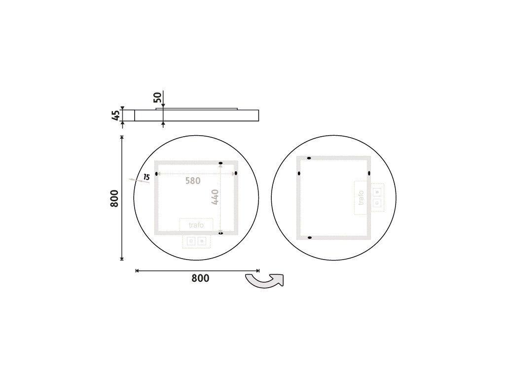 | Rozměr: | Zrcadlové sklo, hliník. |