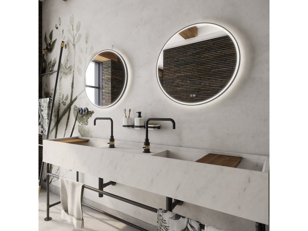 Kulaté zrcadlo s rámem a s celoobvodovým podsvícením pro dokonalé a rovnoměrné osvětlení.