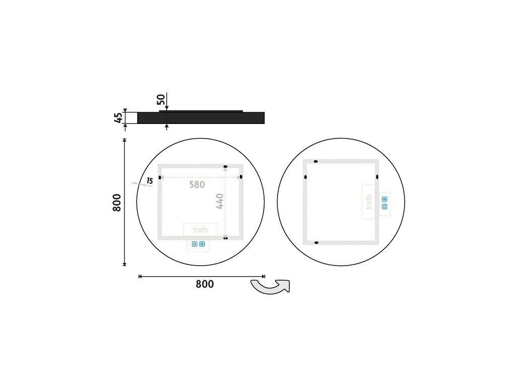 Kulaté zrcadlo s rámem a s celoobvodovým svícením pro dokonalé a rovnoměrné osvětlení. Zrcadlo se ovládá dvěma dotykovými podsvícenými senzory, které umožňují změnu barvy světla, nastavení intenzity osvětlení (stmívání) a disponují paměťovou funkcí pro uložení posledního nastavení. Kromě toho lze zrcadlo ovládat i pomocí nástěnného vypínače, což zvyšuje jeho flexibilitu a pohodlí použití. Pro dosažení kvalitního a rovnoměrného svícení je použit akrylový difuzor, který zajišťuje měkký a harmonický rozptyl světla bez viditelných bodových zdrojů. LED diody jsou vkusně integrovány do rámu spolu s difuzorem, což přispívá k elegantnímu a čistému vzhledu zrcadla. Zrcadlo využívá nejmodernější LED čipy SMD 2835, které jsou známé svou vysokou svítivostí, energetickou úsporností a dlouhou životností. Hustota čipů 2-in-1 120/m (240/m), životnost 50 000 hodin. Parametry LED: Survival Factor = 1, Lumen Maintenance Factor 0,99 a Flicker Metric 0,02, pak zajišťují stabilní, bezblikavé a dlouhodobě konzistentní osvětlení. Nosná konstrukce zrcadla je vyrobena z masivního hliníkového rámu o rozměrech 32x19 mm, který zajišťuje vysokou pevnost a stabilitu. Stejně tak je z hliníku vyroben kryt zdroje a všech elektronických součástek. Sklo o tloušťce 5 mm je opatřeno bezpečnostní fólií, která chrání před zraněním v případě rozbití. Zrcadlo navíc disponuje stupněm ochrany proti vlhkosti IP44, což zaručuje spolehlivost i v prostředí s vyšší vlhkostí. Zrcadlo splňuje všechny české normy a je opatřeno českým certifikátem CE, který zaručuje jeho kvalitu a bezpečnost. Nabízí flexibilní možnosti upevnění, a to jak vertikálně, tak horizontálně, a je dodáváno včetně kompletní montážní sady a kabelové spojky s ochranou IP44. Pro zajištění bezpečné přepravy je zrcadlo pečlivě zabaleno a připraveno k expedici prostřednictvím kurýrní služby. Ovládání: Dotykové senzory + možnost ovládání nástěnným vypínačem Nastavení barvy světla: Ano Barva světla: Nastavitelná v rozsahu 3000–6500 K (od teplé po studenou bílou) Funkce stmívání: Plynulé stmívání Paměť nastavení: Automatická paměť nastavení Konstrukce svícení: K rovnoměrnému rozptylu světla zrcadlo disponuje akrylovým matovaným difuzorem Integrace LED: Led diody jsou zabudované v rámu LED čip: Nejmodernější LED čipy SMD 2835 LED pásek - hustota čipů: 2-in-1 120/m (240/m) Životnost LED čipů: Až 50 000 hodin Kvalita osvětlení LED: Survival Factor = 1; Lumen maintenance factor = 0,99; Flicker metric = 0,02 Materiál: Zrcadlové sklo, hliník Materiál konstrukce: Rám zrcadla a kryt zdroje jsou vyrobeny z hliníku Tloušťka skla: 5 mm Ochrana při rozbití: Bezpečnostní fólie Stupeň ochrany: IP 44 Certifikace: Český certifikát CE Umístění: Montáž na stěnu Možnost upevnění vertikálně i horizontálně Montážní příslušenství: Součástí balení je montážní sada a kabelová spojka s ochranou IP 44 Obal: Zabalené pro přepravu kurýrní službou Napětí: Vstupní napětí 220-240 V Výstupní napětí 12 V Příkon: 26 W, světelný tok: 1872 lm Rozměr: v: 800 mm š: 50 mm d: 800 mm Hmotnost: 8,78 kg NIMCO všeobecný ilustrovaný návod k montáži výrobků. Součástí výrobku jsou šrouby a hmoždinky. Lze je použit do betonu a obkladu, který má tloušťku do 8 mm. Správná kombinace použití hmoždinek a šroubů pro: BETON – hmoždinka pr. 6, vrut min. 3,5*40 mm CIHLA – hmoždinka pr. 6, vrut min 3,5*40 mm RIGIPS – hmoždinka uzlovací do sádrokartonu a dutých materiálů pr.6 mm, délka hmoždinky 35 mm, vrut 3,5*40 mm OBKLAD – hmoždinky a šrouby- nutné použít delší o tloušťku daného obkladu (dlažby) Časté chyby při montáži! -vrtání do spáry -použití nesprávné velikosti (průměru a délky) hmoždinek a šroubů -použití nesprávné velikosti vrtáku -zanesený otvor po vyvrtání -použitá hmoždinka vyčnívá nad obklad. Hmoždinka musí být v jedné rovině s obkladem. V opačném případě výrobek na obkladě nedrží a vyviklá se! -výrobek nebude na stěně uchycený v jedné rovině, pokud budou chybně vyvrtané otvory Svítidlo je svojí podstatou bezúdržbové. Vnější povrch svítidla ošetřujte pouze měkkým hadříkem lehce navlhčeným vodou. Nepoužívejte žádné agresivní čistící prostředky ( zejména s obsahem chlóru a jeho derivátů), které mohou způsobit oxidaci zrcadloviny. Vnitřní prostor svítidla nevyžaduje žádnou údržbu. V případě poškození ochranného krytu je nutné jej vyměnit v servisním středisku výrobce. Pro čištění zrcadel stačí používat hadříky, které lze objednat pod artiklovými čísly RP 1006 a RP 1006 SET. Tyto hadříky jsou skvělými pomocníky v domácnosti, ideálními především pro čištění zrcadlových a skleněných povrchů. Díky jejich vysoké kvalitě zajistí dokonalý výsledek při každém použití, a to bez nutnosti použití chemických prostředků. Pozor! Nikdy neprovádějte jakékoliv operace na svítidle, pokud je zapnuté, svítí a je pod elektrickým napětím. Elektrické vybavení svítidla je bezúdržbové, pouze v případě poruchy světelného zdroje je třeba jej vyměnit. Pro opravy kontaktujte prodejce nebo výrobce. Veškeré práce ne elektrickém zařízení může provádět pouze osoba k tomu způsobilá, dle místních předpisů. Na výrobek je poskytována zákonná záruční doba 2 roky. GPSR GPSR informace o výrobci.Doplňkové parametry