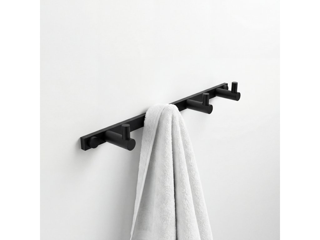 Černý čtyřháček s jednoduchými háčky je skvělým doplňkem do koupelny. Spojení jednoduchosti s čistými liniemi a tvary přesně vystihuje sérii koupelnových doplňků Bormo černá. Prostý design této řady v sobě skloubil nadčasový vzhled, spolu s funkčností každého výrobku. Bormo černá nabízí prostředí plné harmonie a jednoduchosti, které z vaší koupelny vykouzlí místo, kde se budete cítit báječně a kde je relaxace zaručena. Všeobecný návod údržby kovových výrobků Povrch pochromovaných výrobků a výrobků z korozivzdorné oceli vyžaduje pravidelné čištění. Koupelnové doplňky lze čistit horkou vodou s prostředkem na mytí nádobí (saponát) a poté přeleštit jemným hadříkem a vytřít do sucha. Nejlepší způsob na odstranění silnějšího znečištění, např. vodního kamene, je použití octa. Roztok by měl působit nějakou dobu, cca 15 – 20 minut. Po aplikaci je nutné výrobek dobře opláchnout čistou vodou. Na plochy výrobků z korozivzdorné oceli leštěné do vysokého lesku je nutné používat bezchlórové prostředky! Např. na čištění skla. Skleněné a keramické příslušenství doplňků čistěte obdobným způsobem jako kovové části a vyvarujte se také používání prostředků zmíněných níže. V žádném případě nepoužívejte k čištění myčku na nádobí. Pro údržbu kovového, skleněného a keramického příslušenství stačí používat hadříky, které lze objednat pod následujícími artiklovými čísly: RP 1005, RP 1005 SET, RP 1006 a RP 1006 SET. Tyto hadříky jsou skvělými pomocníky v domácnosti. Jsou ideální pro čištění různých povrchů a díky jejich vysoké kvalitě zajistí dokonalý výsledek při každém použití, a to bez použití chemických prostředků! Poškození povrchu může nastat v těchto případech : a) použití bělících nebo desinfekčních prostředků především pokud obsahují sloučeniny chloru (chlornany, chlorečnany, apod.). Tyto prostředky nemusí být používány přímo na výrobky. Výrobek může být poškozen i v nevětratelné místnosti, kde se sráží voda s příměsí chloru (bazény, vířivky apod). b) vlivem působení vodního kamene. Tlusté vrstvy vodního kamene, které jsou i vlhké, výrazně zvyšují riziko poškození i koroze. c) použití alkalických nebo kyselých silně koncentrovaných čisticích prostředků a prostředků obsahující silná oxidační činidla (protiplísňové a bělící prostředky). Tyto prostředky nemusí být používány přímo na výrobky. V omezeně provětrávaných prostorech je vhodné se vyhnout použití těchto prostředků – odpařované chlorované sloučeniny mohou na povrchu kondenzovat a tím ho poškodit. Pokud je nutné tyto čisticí nebo desinfekční prostředky použít, je nutné zajistit dobré větrání prostor a čištěné povrchy dobře a rychle opláchnout! d) použítí prostředků stavební chemie určených pro čištění např. dlažeb od stavebních hmot - jsou velmi korozně agresivní! e) použití tekutých nebo pastovitých písků, které obsahují abrasivní částice! Je třeba vyhnout se jakýmkoli drsným čisticím prostředkům, protože ty mohou být příčinou škrábanců. V žádném případě se nesmí používat ocelová vlna. Ta uvolňuje částečky železa, které porušují povrch. f) používání ponorných lázní na čištění stříbra! Ty obsahují silné kyseliny nebo chloridy a jsou pro čištění pochromovaných výrobků či výrobků z korozivzdorné oceli rovněž naprosto nevhodné. g) v případě čištění povrchů čistícími prostředky, kde není známé složení, které by mohlo poškodit vrchní vrstvu povrchové úpravy. Škodlivá je i kuchyňská sůl. Používáním nevhodných čistících prostředků nebo nesprávnou údržbou dochází k poškození výrobku vinou spotřebitele a na vzniklé závady nemůže být uplatněna reklamace! Na výrobky je poskytována prodloužená záruční doba na funkčnost výrobku 10 let. Na povrchovou úpravu výrobku je poskytována záruční doba po dobu 2 roky. Na části výrobku zahrnující: pumpička dávkovače, štětiny toaletního kartáče, rukojeť a krytka kartáče, keramické a skleněné nádobky je stanovena zákonná záruční doba. GPSR GPSR informace o výrobci.Doplňkové parametry