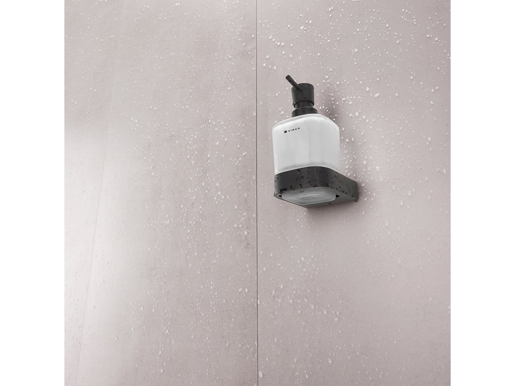 Nástěnný dávkovač tekutého mýdla matné sklo a černý kov, pumpa mosaz je skvělým doplňkem do koupelny.