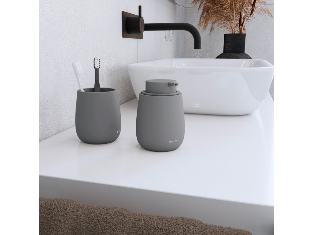 Keramický dávkovač na tekuté mýdlo tmavě šedý matný. Objem 425 ml. Soft-touch povrch.